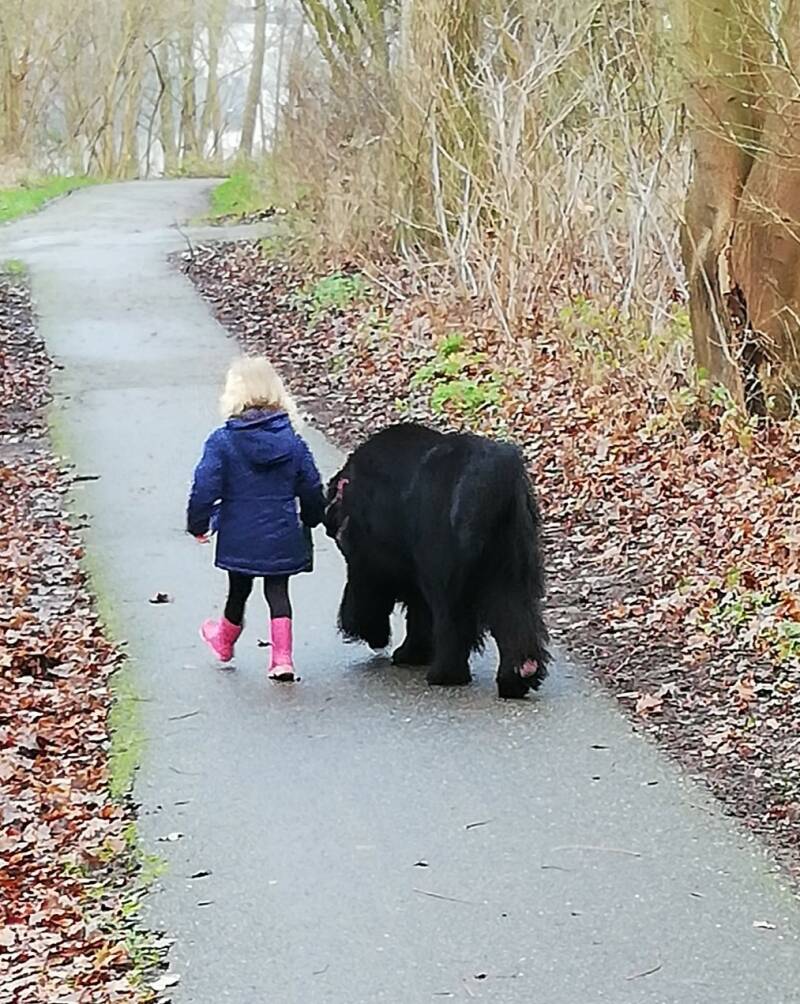 Nash loopt keurig naast de kleine meid